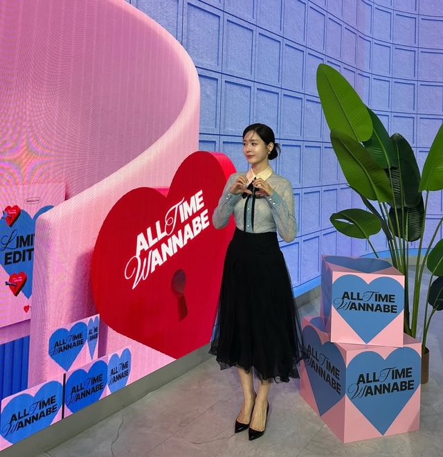 리본 이모티콘과 함께 자신의 사진을 공개한 성유리는 인형같은 헤어스타일링과 패션을 선보이며 수줍은 표정과 함께 '손하트' 포즈를 해 눈길을 끈다.