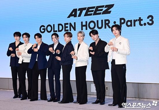에이티즈(홍중, 성화, 윤호, 여상, 산, 민기, 우영, 종호)의 미니 12집 '골든 아워 : 파트 3(GOLDEN HOUR : Part.3)' 발매 기념 기자간담회가 12일 오후 서울 마포구 호텔 나루 서울 엠갤러리 나루 볼룸에서 열렸다.