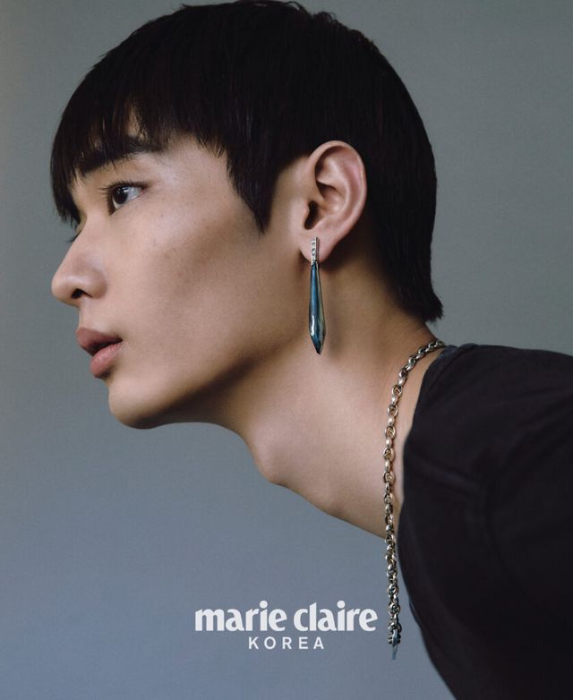 화이트 골드에 팰컨 아이를 세팅한 이어링, 체인 네크리스 모두