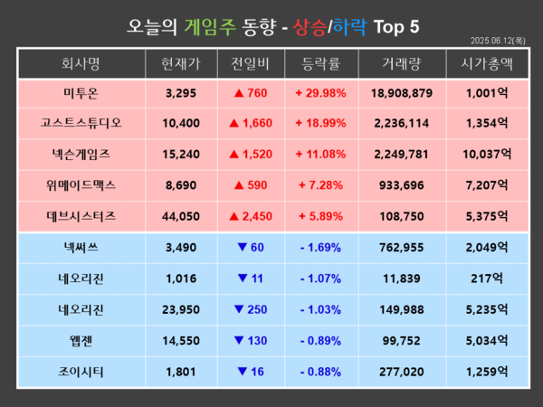 미투온이 금일(12일) 전거래일 대비 29,98%(760원) 상승한 3,295원에 거래를 마쳤다. 개인이 66,229주를 순매수한 반면, 외국인이 93,984주를 순매도하며 상한가를 달성했다.