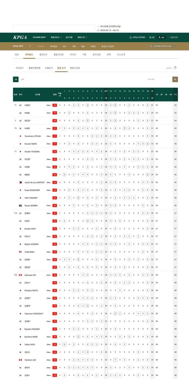 ▲하나은행 인비테이셔널 1라운드 순위
