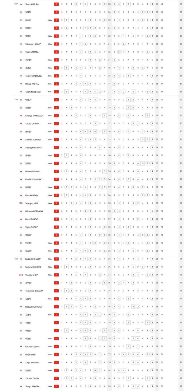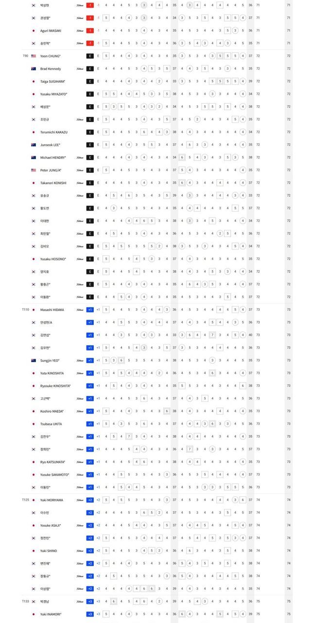 T1.이형준-옥태훈 -9, 3.최진호 -8, T4.이태희-오츠키 토모하루-이와타 히로시 -7, T7.츠카다 요스케-이상희-이정환-배용준-코사이히라 유와-요시다 타이키-션 노리스 -6, T15.정재현-이창우-히가 카즈키-박은신-김태훈-정한밀 -5, T23.고석완-김민수-송영한-김홍택-쇼겐지 타츠노리-김백준-김민규-이태훈-류현우-김영수 -4, T37.임예택-최승빈-함정우-전준형-강경남-이에무라 토모요-나베타니 타이치 -3, T49.전성현-문도엽-타케야수 순야-문경준-김민준-한승수-호리카와 미쿠무-맹동섭-오승택 -2, T69.신용구-조우영-이시자카 토모히로-김경태-이승민-이규민-김승혁-김동민-오기소 타카시-이마히라 슈고-박상현-송민혁 -1, T90.배상문-이준석-조민규-유송규-이대한-김비오-양지호-황중곤 E, T110.안성현A-김우현-키노시타 유타-키노시타 료스케-고군택-김찬우-장희민-이동민 +1, T125.이수민-정찬민 +2, T142.백석현 +5.