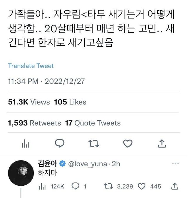 아 내가 좋아하는 우림이 언니 타투 하고싶은데 자기가 뭔데 하지말라그래 ㅡㅡ