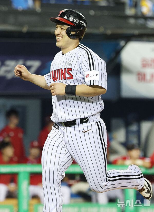 후속타자 박동원이 우측 펜스 상단을 직격하는 2루타를 작렬, 주자 둘을 홈에 불러 LG의 5-3 역전을 이끌었다. SSG 우익수 한유섬이 타구를 잡기 위해 뛰어올랐지만 포구하지 못했다.
