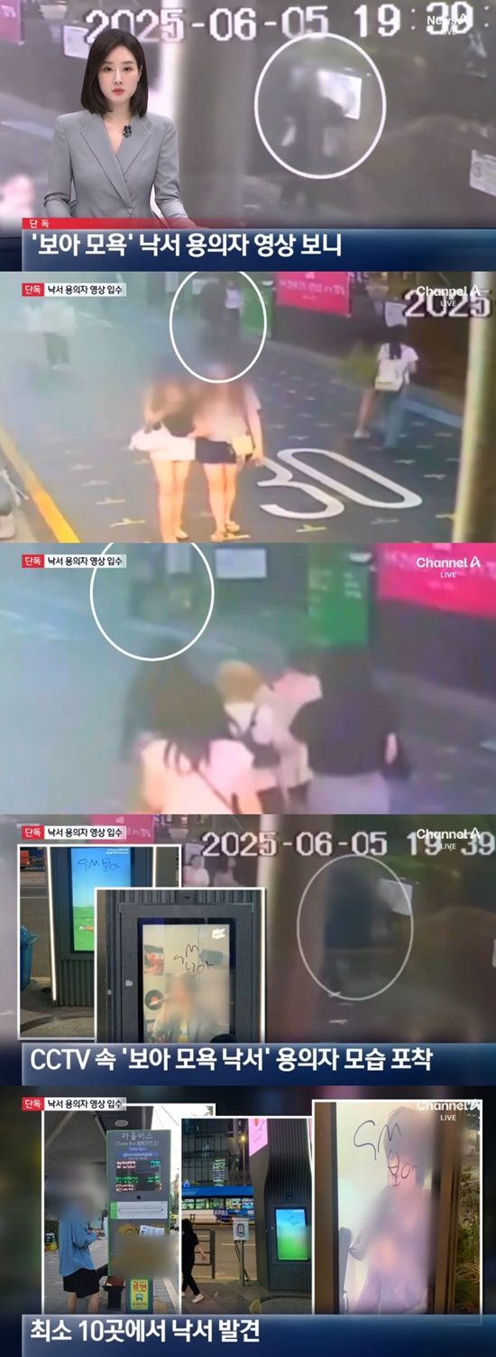 12일 채널A는 서울 곳곳에 모아를 모욕하는 낙서를 쓰는 용의자의 모습이 담긴 CCTV를 공개했다.
