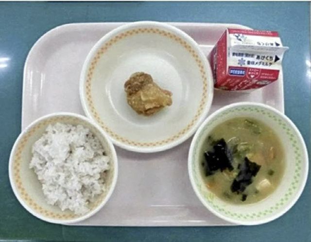 이 사진 속 급식은 밥과 된장국, 반찬으로는 ‘닭튀김 1조각’이 제공됐다. 사진을 본 일본 누리꾼들은 “너무 부실하다”, “성장기 어린이들에 부족한 식단이다”라는 등 비판이 제기됐다.