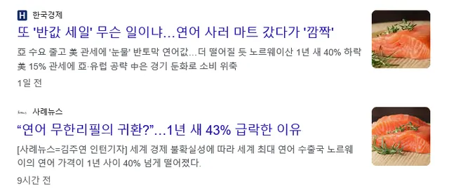 2. 미국 관세로 다른 나라에 판매 하려고 했는데 연어 소비가 줄어듬