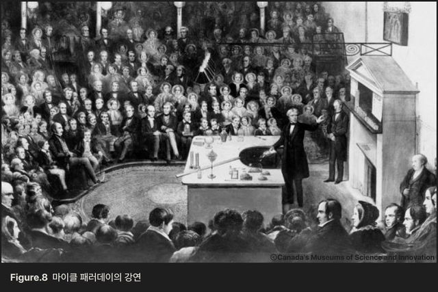 대표적인 예로 18세기 후반 유행했던 전기 실험은 실험실이 아닌 살롱이나 귀족의 저택에서 진행되었죠. 대중강연으로 유명했던 험프리 데이비(Humphry Davy)와 마이클 패러데이(Michael Faraday)도 강연을 하는 극장의 무대 바로 옆에서 실험했죠.