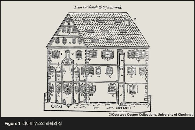 반면, 리바비우스는 연금술과 대비되는 가상의 ‘화학의 집’을 제안했는데요. 화학의 집은 도심에 있었고, 커다란 창을 통해 들어온 빛이 내부를 환하게 밝혀주는 구조였습니다. 말하자면 연금술은 어둠의 학문이고, 화학은 빛의 학문이라는 것이죠.