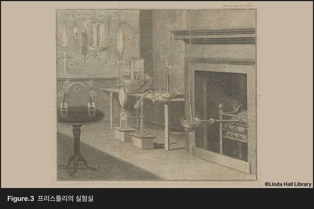 반면 동시대 프리스틀리의 실험실은 17세기의 연장선이었습니다. 집에 실험실을 두고 공기 수집기를 개량해서 실험했죠. 그래서 혹자는 프리스틀리를 최후의 연금술사라고 칭하기도 합니다.