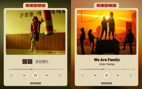한편, 짜릿한 카트 체이싱 시퀀스에서는 릭 애슬리(Rick Astley)의 ‘Never Gonna Give You Up’이 삽입돼 긴박한 상황 속 경쾌한 리듬으로 색다른 재미를 부여한다. 여기에 태권도장에서 ‘종민’이 아이들을 가르칠 때 삽입돼 웃음을 선사하는 모모랜드의 ‘뿜뿜’은 오정세가 직접 아이디어를 냈다는 후문이다. 마지막으로 ‘하이파이브’ 멤버들의 끈끈한 팀워크를 상징하는 테마곡으로 시스터 슬레지(Sister Sledge)의 ‘We Are Family’가 울려 퍼지며 영화의 대미를 장식한다.