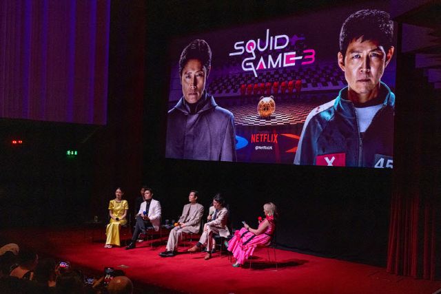 오후에는 유럽에서 가장 큰 규모를 자랑하는 바비칸 센터(The Barbican)에서 ‘오징어 게임’ 시즌3 1화가 상영되는 런던 프리미어 행사가 개최되어 화제를 모았다. ‘오징어 게임’ 시즌3 런던 프리미어에는 황동혁 감독을 비롯, 이정재, 이병헌, 박규영이 참석해 상영에 앞서 진행된 핑크 카펫에서 팬들과 눈을 맞추며 밝은 미소와 활기찬 인사를 전하며 현장의 열기를 더했다. 특히, 런던 프리미어에서 ‘오징어 게임’ 시즌3 파이널 포스터가 최초 공개되어, 본편 상영 전 작품에 대한 기대감을 한층 끌어올렸다. 1화 상영이 끝나자 상영관을 가득 채운 400여 명의 팬들은 박수 세례와 열렬한 환호를 쏟아내며 더욱 잔혹해진 게임과 예측할 수 없는 전개로 돌아온 ‘오징어 게임’ 시즌3에 대한 호평을 보냈다. 장대한 피날레로 다시 한번 전 세계를 사로잡을 ‘오징어 게임’ 시즌3에 대한 기대감이 더욱 높아진다.