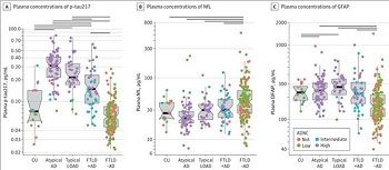 연구 결과, 사후에 측정된 혈액검사에서 알츠하이머병 환자군이 지닌 p-tau217 농도(평균 0.28 pg/mL)가 전두측두엽 치매 환자(평균 0.10 pg/mL)보다 혈액 내 농도 보다 높았다.(P< .05). </p>