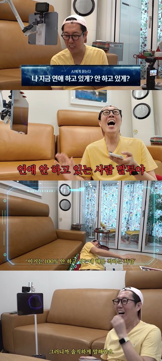 김영철은 "연애 얘기 너무 좋아. 나 지금 연애 하고 있게, 안 하고 있게?"라고 물었고, AI는 "근데 너 지금 말투가 이미 지금 연애 안 하고 있는 사람 말투다. 이거는 100% 안 하고 있는데 해본 척하는 사람"이라고 지적해 웃음을 줬다.