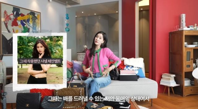 이날 1997년 작인 영화 ‘비트’ 시절 착용했던 벨트를 내보인 그는 “막 샤넬이 들어왔을 때인데 그땐 여의도 공원 앞에서 언론사 촬영을 했다. 당시엔 배를 드러낼 수 있는 몸매라 맨 허리에 이 벨트를 했는데 지금은 안 채워진다”라고 쓰게 말했다.
