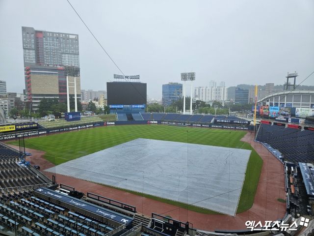 (엑스포츠뉴스 창원, 유준상 기자) 창원NC파크에 계속 비가 내리고 있다.