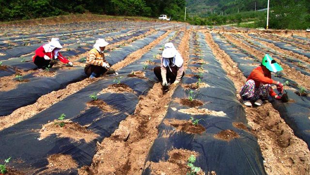 수박 모종을 본밭에 옮겨 심는 재배 초기 작업 자료사진. / 연합뉴스