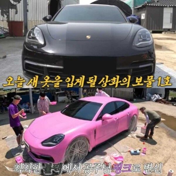 이어 강남은 "솔직히 너무 무서워서 잠도 제대로 못 잤다"며 불안한 마음을 내비쳤지만, 이내 이상화의 검은색 포르쉐 차량에 분홍색 수성 페인트를 열심히 칠하기 시작했다. 차량 전체를 핑크색으로 변신시킨 후 강남은 아내의 반응을 조마조마하게 지켜봤다.