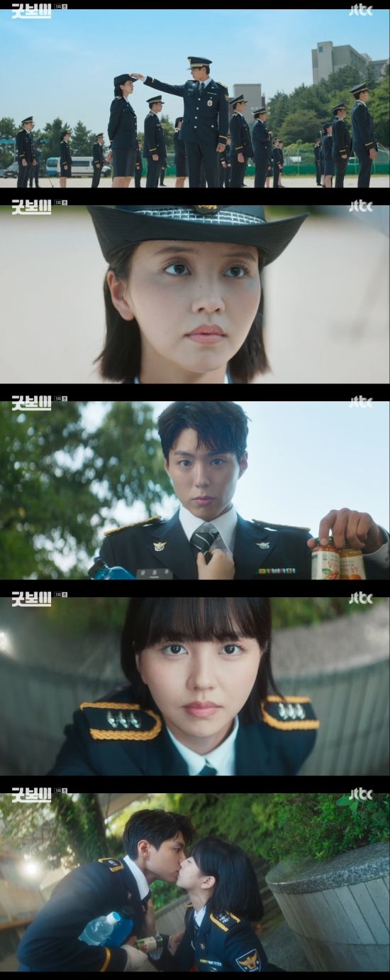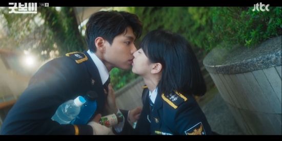 14일 방송된 JTBC 토일드라마 '굿보이' 5회에서는 지한나(김소현 분)가 윤동주(박보검)에게 입을 맞춘 모습이 그려졌다.