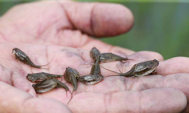 긴꼬리투구새우는 포식성이 매우 강하고 다리를 이용해 흙을 휘젓고 다니면서 먹이를 찾는 습성 때문에 잡초제거(흙탕물로 햇빛을 차단하여 잡초의 성장 억제)와 해충발생억제(해충의 유충을 주먹이로 함) 등 친환경 농법에 큰 도움을 주는 것으로 알려져 있다 / 뉴스1(산청군 제공)