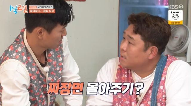조세호는 김종민에게 “게임에서 이겼는데 왜 같이 먹어야 하는지 설득을 해봐라”라고 기회를 줬지만, 김종민은 그저 “배고파”라고만 말했다. 결국 둘이서 짜장 한 그릇을 먹게 된 상황. 이에 문세윤과 김종민은 한 명에게 짜장면을 몰아주기로 했다. 다른 멤버들이 짬뽕, 탕수육 등을 시켜 맛있게 먹는 사이 문세윤은 “내일도 영업하시죠? 내일 먹으면 더 맛있다”라고 긍정 회로를 돌렸다.