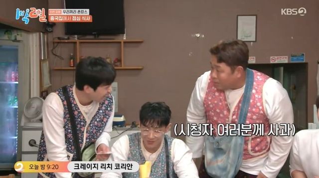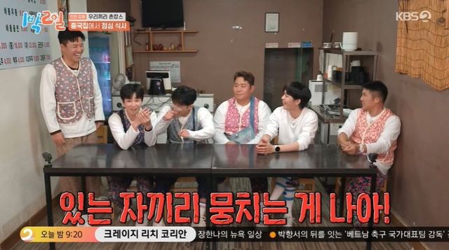 이날 멍때리기 대회에서 1등 한 이준은 상금으로 만 원을 받았다. 이준이 가진 만 원밖에 없는 상황. 멤버들은 이준의 상금으로 밥을 먹자고 압박했다. 중식당에 도착한 멤버들은 다행히 ‘이 노래 뭐예요?’ 미션을 통해 상금을 획득할 수 있었다.