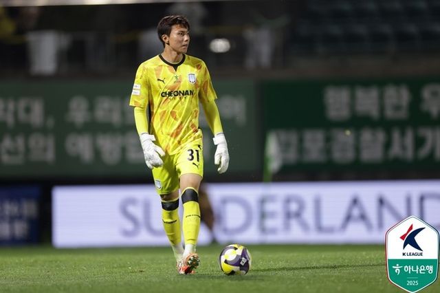 허자웅이 선발 데뷔전을 치렀다. 허자웅은 2020년 성남FC에서 입단했는데 단 1경기도 뛰지 못했다. 2023년 부산교통공사 임대를 다녀온 이후에도 기회를 못 받았다. 2025년 천안에 입단을 했는데 박주원 등에 밀려 나서지 못했다. 지난 김포FC전 박주원이 큰 부상을 당해 교체 투입해 K리그 첫 경기를 치렀다.