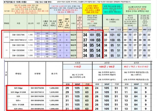 KT와 LG유플러스가 타사 고객 유치(번호이동)에 더 많은 지원금을 책정한 단가표. 사진=독자 제공