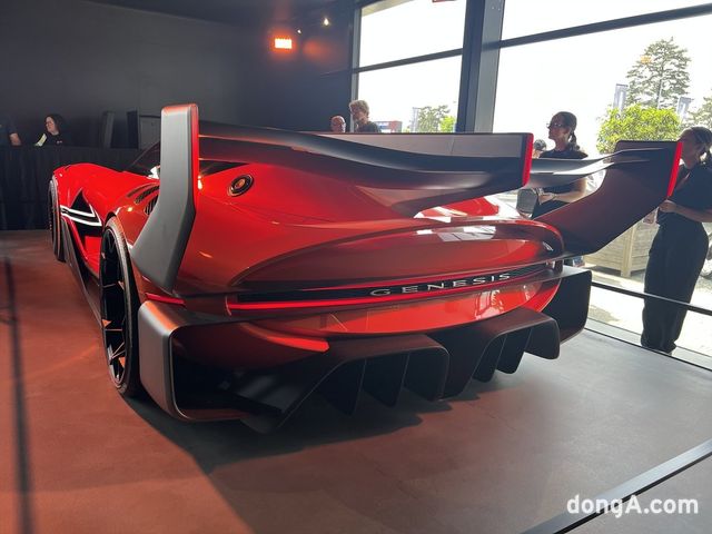 유럽에서 처음 공개한 제네시스 GMR-001 하이퍼카는 마그마레이싱 상징색인 오렌지 컬러와 한글 ‘마그마’ 디자인이 리버리에 적용된 것이 특징이다. 파워트레인은 3.2리터 가솔린 트윈터보 엔진을 기반으로 현재 개발이 진행 중이다. 최근 내구성 벤치 테스트를 성공적으로 완료했다고 한다. 1.6리터 가솔린 터보 엔진 2개를 합친 형태로 V형 8기통 엔진으로 개발해 제네시스 하이퍼카 머신에 탑재된다.