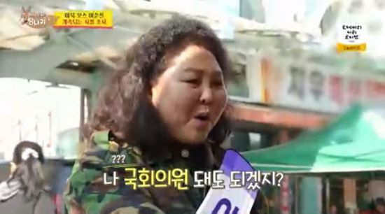 이순실은 위풍당당한 모습으로 시장을 거닐면서 "국회의원 돼도 되겠지?"라고 말하기도 했다.
