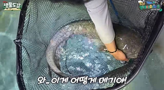 가장 먼저 등장한 건 작년에 부화한 멸종위기종 1급 감돌고기와 어름치 치어들이었다. 이어 소개된 장면에서는 한 수조 안에 엄청난 밀도로 사육 중인 대형 메기들이 눈길을 끌었다. 연구소 관계자는 “기본적인 양식 현장에서는 200~300g이면 다 출하가 되는데, 저희는 연구 목적으로 활용하고 있어 2년 넘게 키운 개체들”이라며 “지금 이 수조에는 거의 200kg 이상 들어가 있다”고 설명했다.