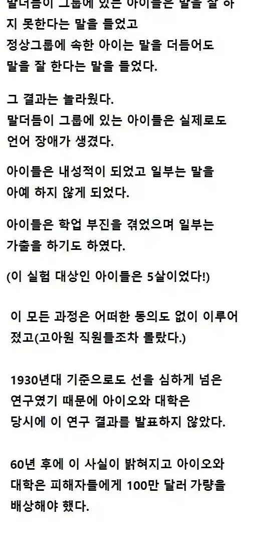 고아들을 언어 장애로 만든 학자,,