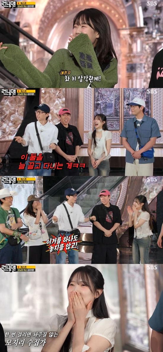 제작진은 "시청자들이 주목 중인 런닝맨 러브라인의 주인공이 찾아왔다"라고 게스트 김아영의 출연을 알렸다. 지예은은 "(김아영이) 완전 꾸미고 왔다. 왜 이렇게 꾸몄냐"며 김아영과의 친분을 과시했다.