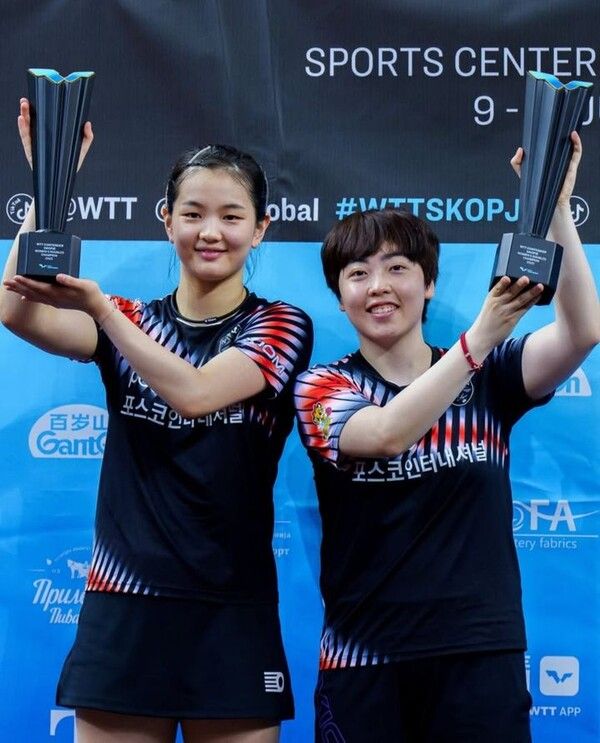 탁구 여자복식 김나영-유한나(이상 포스코인터내셔널) 조가 월드테이블테니스(WTT) 컨텐더에서 우승을 차지했다. 대회 남자복식에 출전한 임종훈-오준성(이상 한국거래소) 조도 정상에 올랐다.