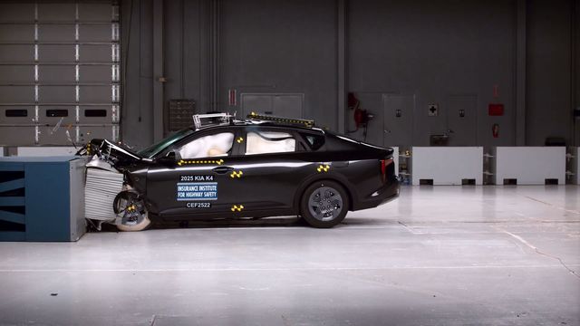 기아 K4의 오버랩 충돌 테스트. K4는 종합 등급 탑 세이프티 픽 +를 받았다. / IIHS 유튜브 갈무리