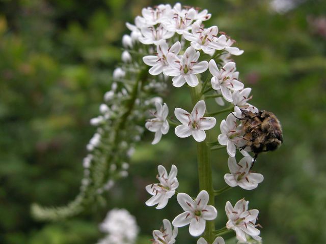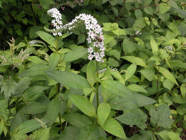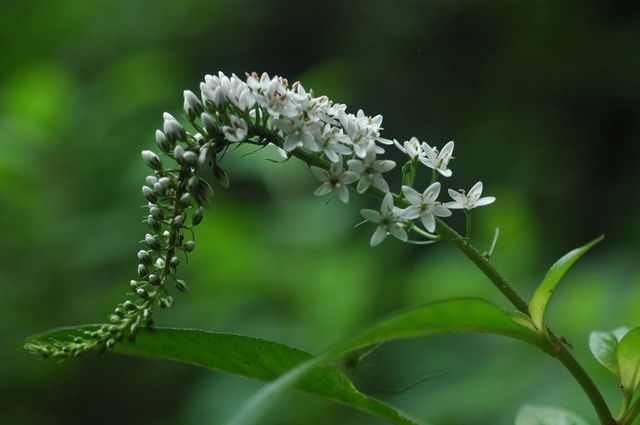 잎은 긴 타원형 또는 피침형으로 길이 6~13cm, 폭 2~5cm다. 잎 앞면은 녹색에 짧은 털이 있을 때도 있고, 뒷면은 연한 녹색으로 털이 없다. 꽃은 6~8월에 한쪽으로 기울어진 총상꽃차례에 흰색으로 촘촘히 피며, 지름 8~12mm, 꽃자루는 6~10mm에 잔털이 있다. 열매는 둥근 삭과로, 꽃받침이 씨방을 감싸며 익는다.