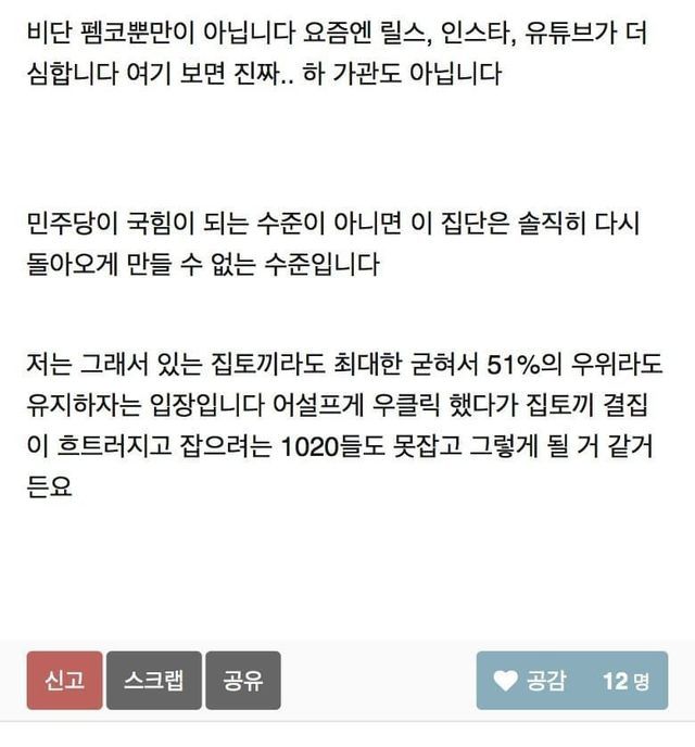 요즘 한녀들은 걍 남자들이 여자를 얼마나 무서워하는지 모름