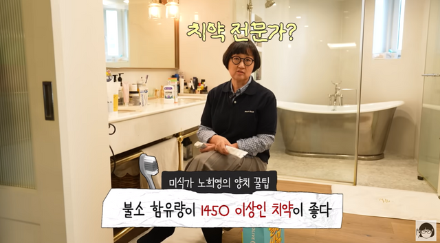 교정을 2번이나 했기에 치아에 예민하다는 노희영. 게다가 직업에 방해가 되는 매운 음식, 짠음식, 술, 담배, 콜라 등 자극적인 식음료를 멀리하기 때문에 입이 '마일드'해서 음식에 따라 맞춤 치약을 사용한다고. 예를 들어 치즈나 고기 등 양식 메뉴를 많이 먹으면 민트 함유량이 높은 치약을 쓰는 식이다. 한 가지 더! 최소 5~6개의 치약을 쓰는 노희영의 치약 꿀팁을 추가로 전하자면 불소 함유량이 1450 이상인 치약이 좋다고. 미식가인 노희영이 픽한 치약과 치실은 과연 무엇일까?