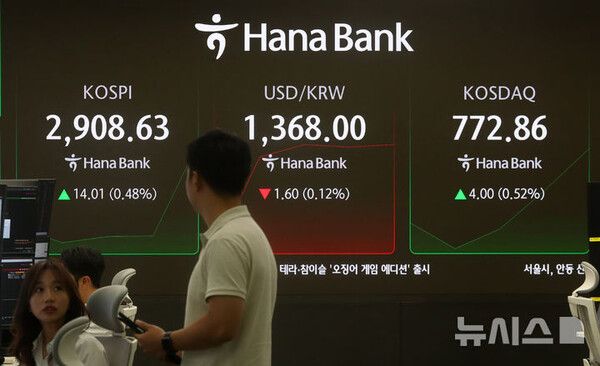 뉴시스 보도에 따르면, 16일 서울외환시장에 따르면 이날 원·달러는 전거래일 종가(1369.6원) 대비 5.8원 내린 1363.8원에 거래를 마쳤다. 전일대비 1.6원 내린 1368.0원에 장에 나선 환율은 장중 낙폭을 확대해 장중 한때 1359.6원까지 떨어지기도 했다. 최고가는 1368.6원이다.