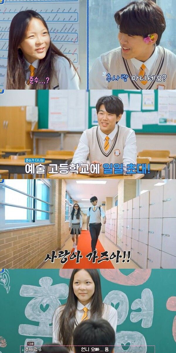 현재 고양 예술고등학교 연기과에 재학 중인 이준수는 "우리 학교가 다른 학교보다 자유롭고 즐길 수 있는 활동이 많은 것 같아서 사랑이를 초대했다"고 방문 이유를 설명했다.