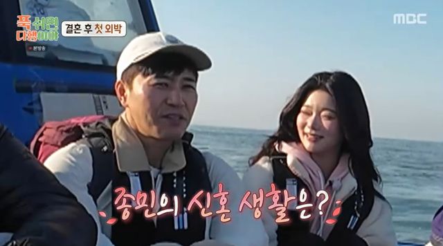 김종민은 결혼한 지 딱 일주일이 지난 시점 촬영에 참여했는데, 첫번재 외박이라고 전했다. 박태환은 "그래도 외박하면 안 되잖아요. 너무 신혼인데"라며 걱정하자, 김종민은 "허락을 흔쾌히 하지는 않았다. 신혼인데 왜이렇게 나가냐고"라고 말해 웃음을 자아냈다.