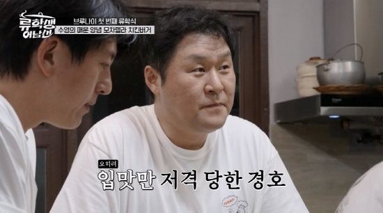 곧 윤경호는 한 입을 베어 물었고, 류수영 또한 은근히 윤경호를 의식했다. 그런데 한 입을 다 넘긴 윤경호는 “냉정하게 얘기해서...한 입만 더 먹고 얘기해야겠어”라고 말해 폭소를 자아냈다.