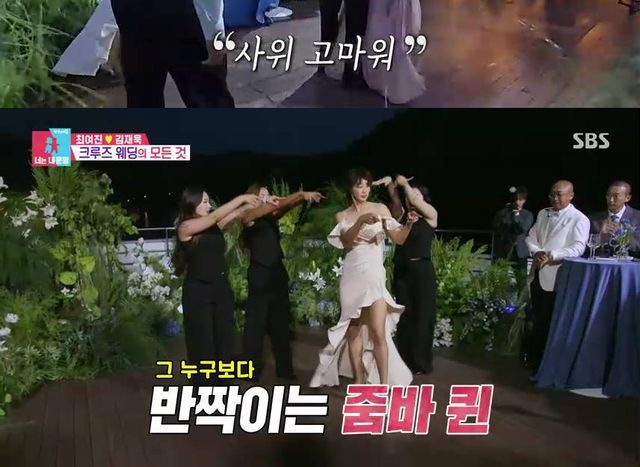 어떤 결혼식이 펼쳐질지 관심을 모은 가운데 드디어 당일, 선상에 꾸며진 결혼식장에는 이현이, 조혜련, 송해나, 아유미 등 ‘골 때리는 그녀들’ 식구들부터 배우 장혁, 김빈우, 박하나, 윤종훈, 가수 아이비, 개그맨 허경환, 김원효 등 각 분야의 스타들이 하객으로 발걸음했다. 최여진은 여느 신부들과는 달리 미니 드레스와 운동화 차림으로 로비에 등장해 눈길을 끌었다. 최여진은 “이런 신부가 어디 있어”라면서도 쾌활하게 직접 하객들을 맞이하며 시끌벅적 유쾌한 분위기를 만들어냈다.
