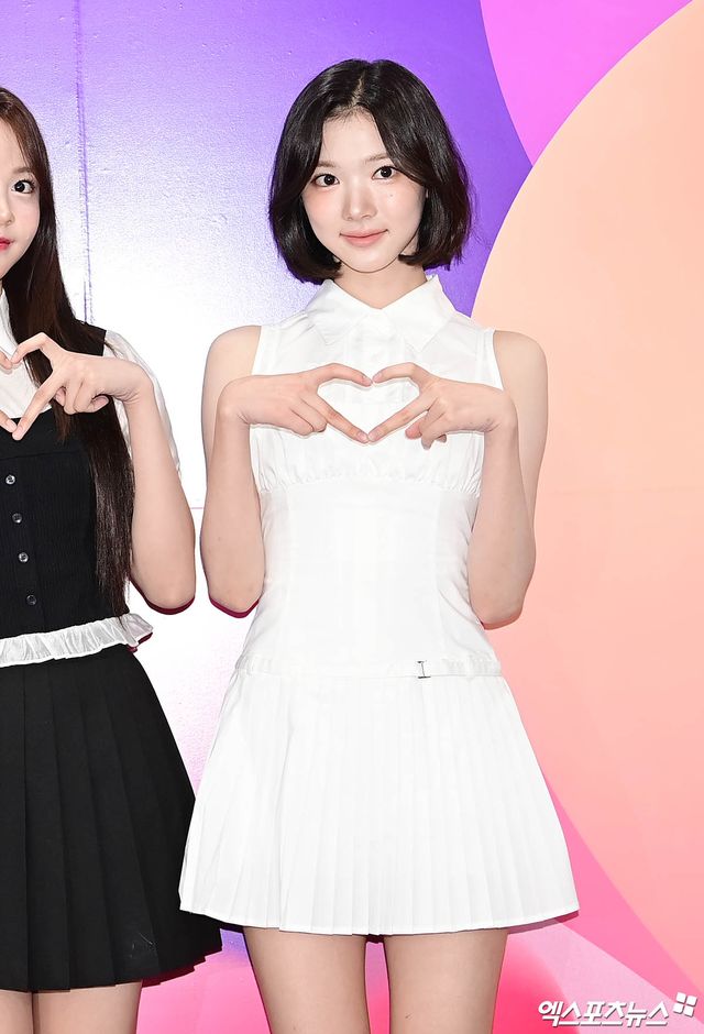 이날 행사에 참석한 하츠투하츠 이안, 지우가 포토타임을 갖고 있다.