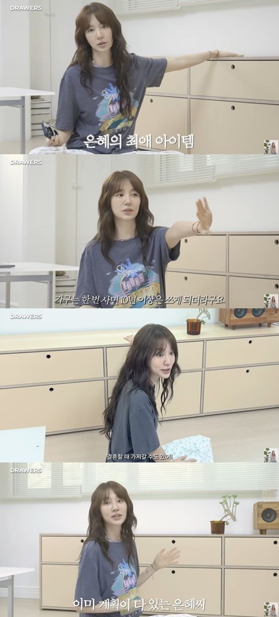 윤은혜는 "진짜 고민을 많이 했다. 사고 200% 만족한다. 한 번 사면 10년 넘게 쓴다. 결혼할 때 가져갈 수도 있다. 내 남편이 마음에 들어 하면 가져갈 거다"라며 결혼 후 계획을 알렸다.