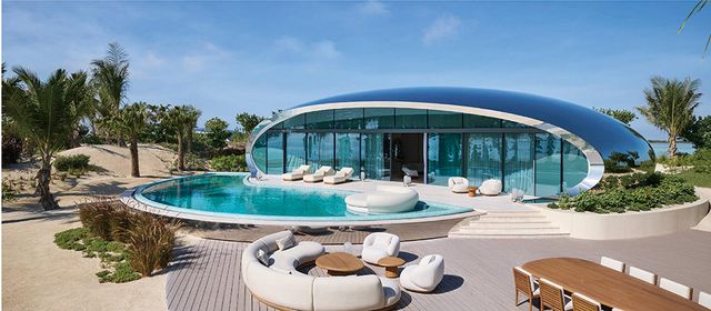 셰바라섬 인근 바다 위, 반질반질한 반구형 구조물이 떠 있다. 멀리서 보면 조개껍데기 같기도, 거대한 해양 생물의 등 껍데기 같기도 하다. 셰바라 리조트는 런던시 청사, 밀레니엄 브리지 등을 설계한 노먼 포스터의 작품이다. 하이테크 건축의 선두주자로 알려진 그는 기술과 자연이 어떻게 공존할 수 있을지 오랫동안 고민해왔다. 이 리조트 역시 그런 철학의 연장선에 있다. 모든 구조는 태양광으로 작동하며, 해수 담수화와 폐기물 재활용 시스템도 갖췄다. 지난해 11월에 개장했으며, 최근 <타임>이 선정한 ‘2025년 세계 최고 장소’ 리스트에 이름을 올린 바 있다. 건물은 단단한 땅이 아닌 수면 위에 놓여 있고, 유기적으로 배치된 구조물은 파도와 빛에 따라 표정을 달리한다. 총 73채의 빌라 중 38채가 수상에, 나머지는 해변을 따라 놓여 있다. 스테인리스스틸로 마감한 외벽은 하늘과 바다를 비추며, 낮에는 거의 눈에 띄지 않다가 해 질 무렵이 되면 서서히 윤곽을 드러낸다. 창을 열면 수면과 시선이 나란해지고, 수상 덱을 걷다 보면 실내와 실외의 경계가 자연스럽게 흐려진다.