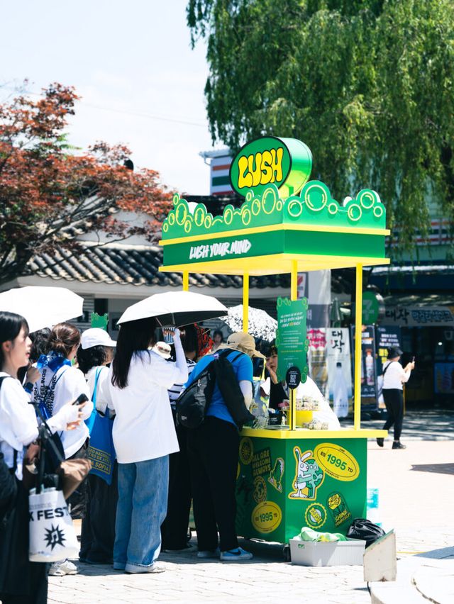 지난 6월 13일부터 15일까지, 강원도 철원군 고석정 일대는 음악과 향기로 가득했습니다. ‘DMZ 피스트레인 뮤직 페스티벌 2025’ 현장에서 러쉬(LUSH)의 ‘프레쉬 워시룸(Fresh Washroom)’ 프로젝트가 펼쳐졌기 때문이죠.