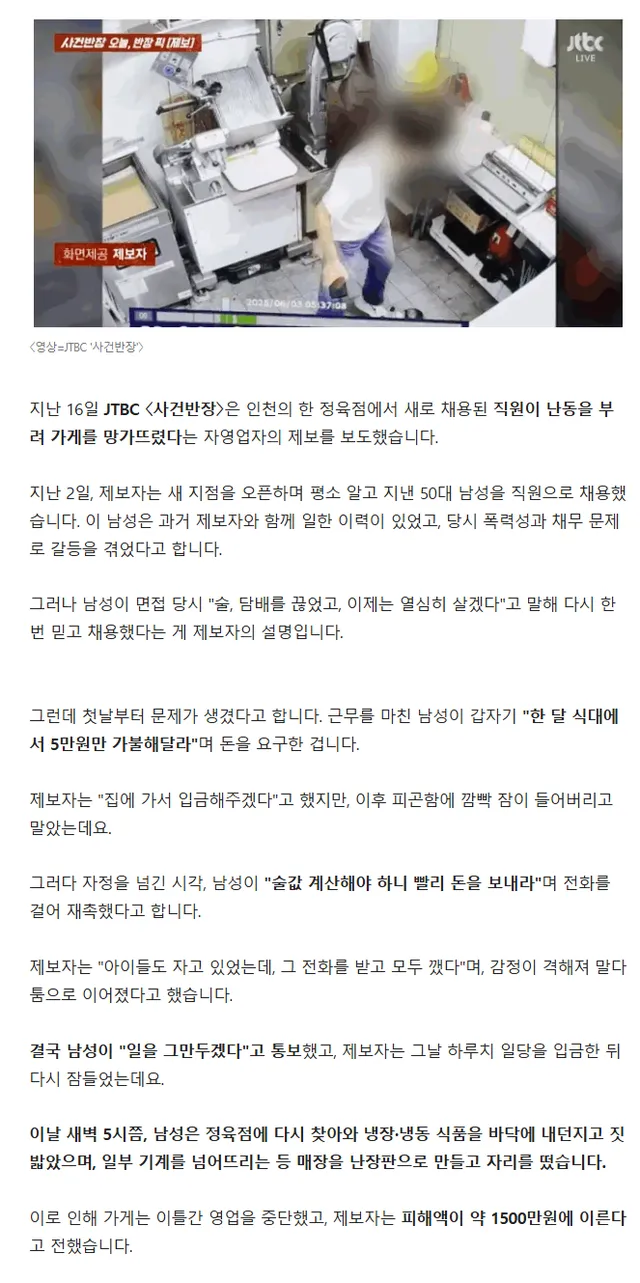 가불 5만원 빨리 안 해준다고난리 + 그만두겠다고 하고 가게 박살