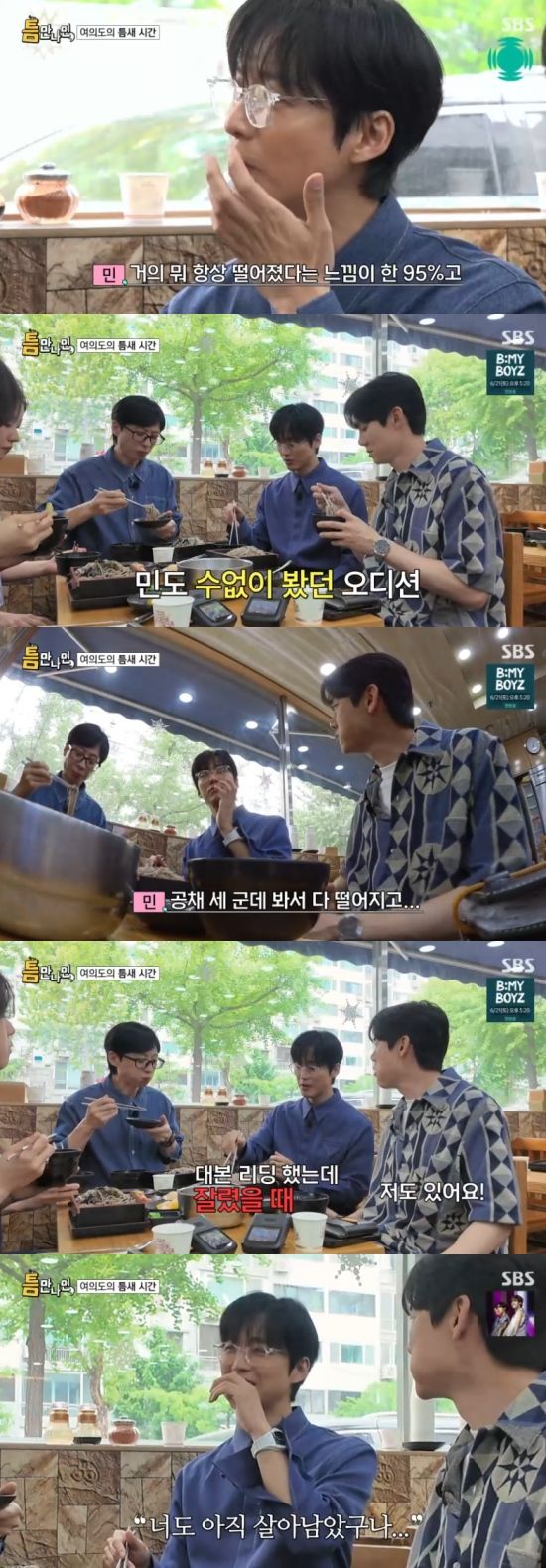 또 이날 남궁민은 수많은 오디션에서 떨어졌던 경험도 전했다. 남궁민은 "오디션을 보면 95%정도는 떨어졌다는 느낌이 바로 온다. 방송사 공채 3군데도 다 떨어졌었다"고 했다.