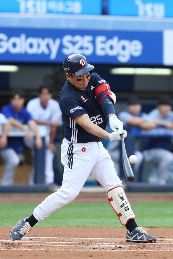 이날 두산은 정수빈(중견수)-오명진(2루수)-양의지(포수)-김재환(지명타자)-김인태(좌익수)-케이브(우익수)-이유찬(유격수)-강승호(1루수)-박준순(3루수)으로 이어지는 선발 타순을 앞세워 삼성 선발 투수 원태인과 상대했다.